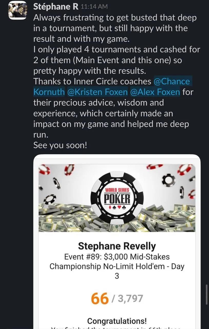 Yes, all 3 coaches (Chance, Alex, and Kristen) are active inside the group-chat, giving you exclusive access to the best players in the world, who will be answering your questions and sharing hand histories from their own poker sessions as well.